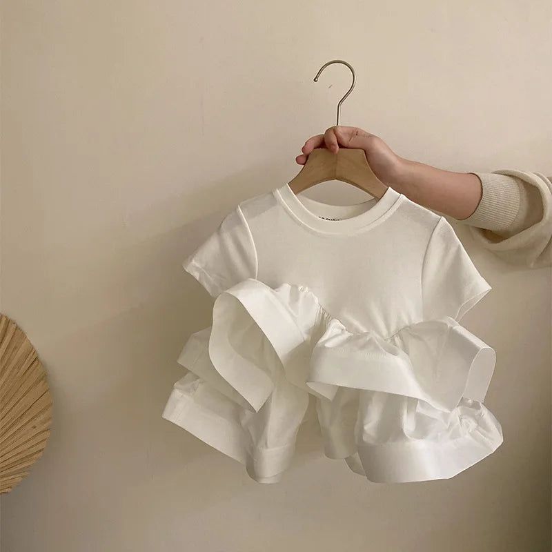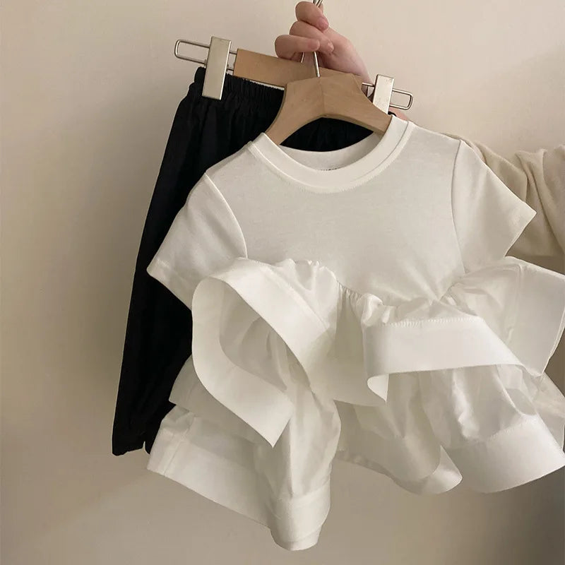 Girls' Korean The New Summer Cake Puff Dress 2025 Summer New Children's Foreign Style Culottes Two-piece Set