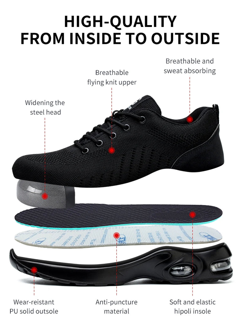 Safety shoes for men and women, breathable work sports shoes, steel toe shoes, puncture resistant safety protection shoes