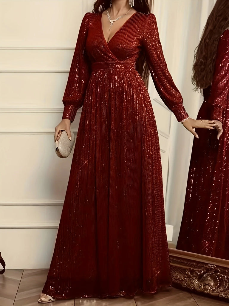 Sequin Element: The entire dress is covered with fine sequins, which sparkle brightly under the light, like stars falling. It has a sense of luxury and high - end, and easily becomes the focus of the occasion.